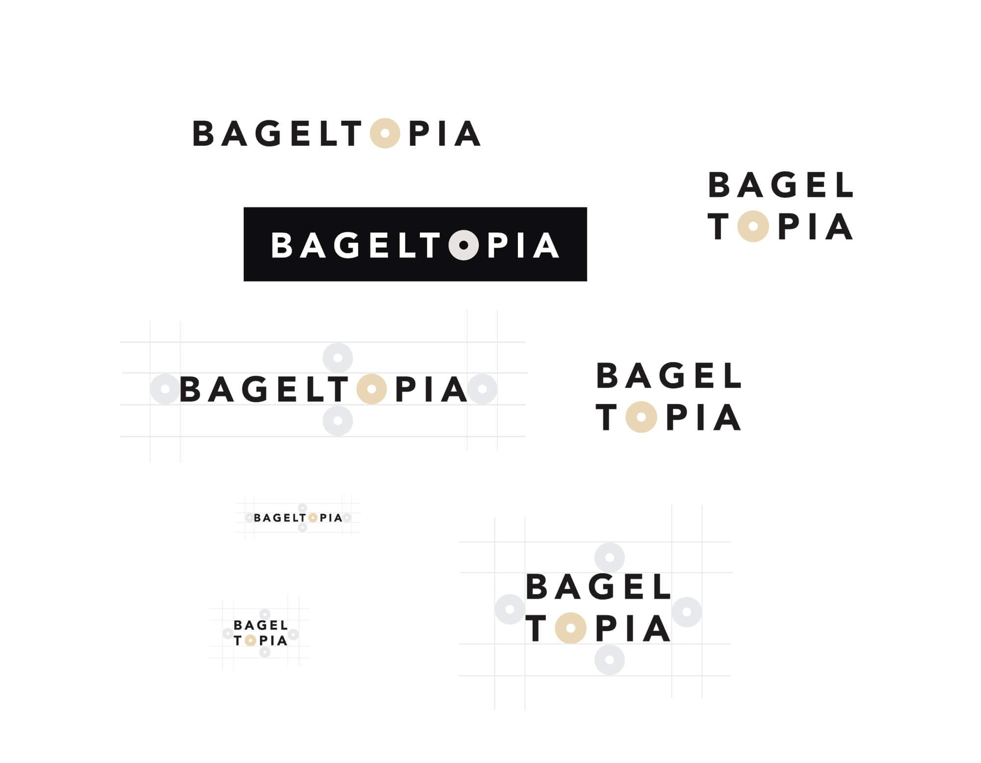 Several early sketches The final Bageltopia logo. Logo orientations Stationery
